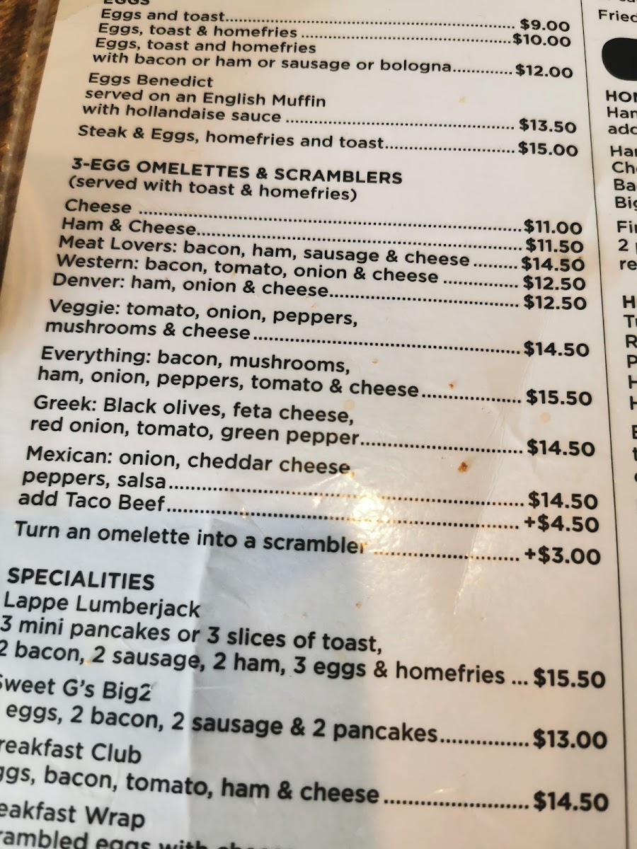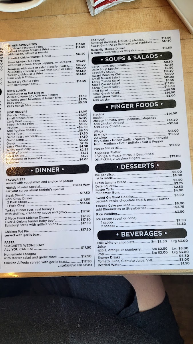 Dawson Diner (Formerly Sweet G's) Menu